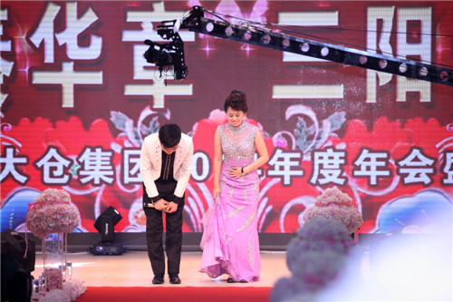 首先由销售工会的大合唱《北大仓》拉开本次年会盛典的帷幕,悠扬、浑厚的歌声震撼了全场。接着播放了北大仓集团2014年度工作回顾短片《百年辉煌 再谱华章》。总经理隋熙凤在场下的欢呼声中登上了舞台,致开幕词。随后在齐齐哈尔公司欢快的歌舞节目《新年更加要努力》之后,进入了激动人心的表彰先进、慰问驻外家属环节。