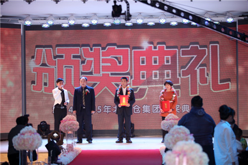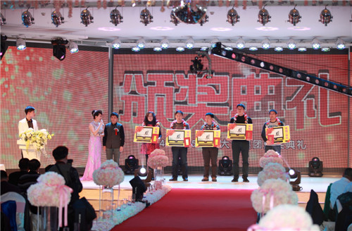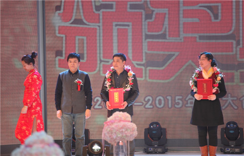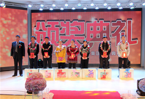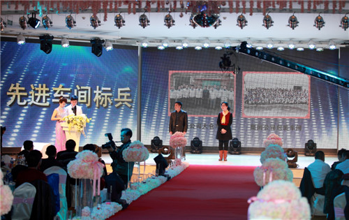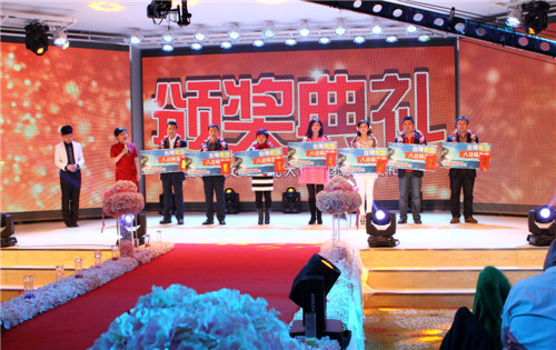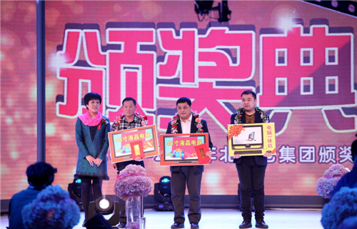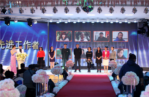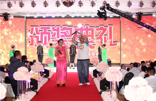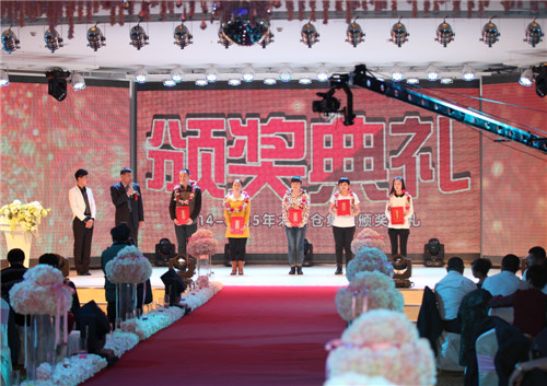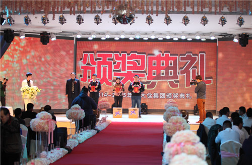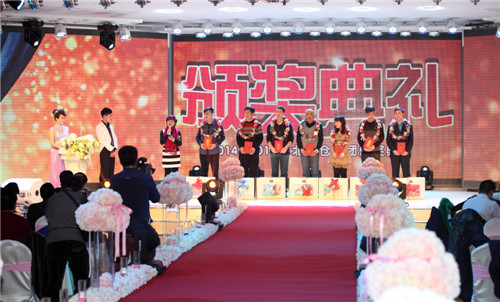 先后颁出了《优秀新人奖》、《工会工作贡献奖》、《优秀员工奖》、《最佳市场开拓奖》、《最佳回款之星》、《先进工作者》、《最佳业绩贡献奖》、《劳动模范》等单项奖和《先进班组标兵》、《先进车间标兵》、《先进销售团队》、《先进科室标兵》、《模范销售标兵团队》等集体奖。还特别设置了《能源节约奖》、《酒体设计奖》、《管理提升奖》来表彰2014年在各自工作领域作出突出贡献的个人胡占发、贲照宇、毕志坤。并以《优秀管理奖》和《优秀团队带头人》称号表彰了高利军、朱彦明、徐蕊、剧慧、安晓丹、苏洪伟、何志宇等在生产和销售管理方面做出卓越贡献的中层领导。本次年会还特别邀请了十五位驻外销售人员的家属来到现场,公司总经理隋熙凤、销售公司副总刘兴宝感谢了他们对驻外人员工作的支持,并为他们发放了慰问金。