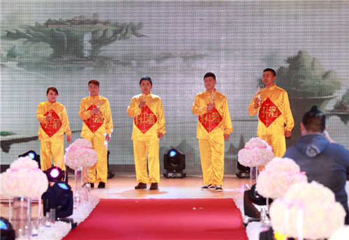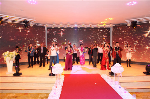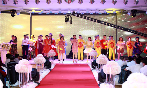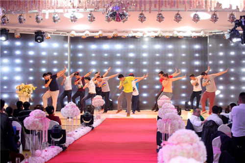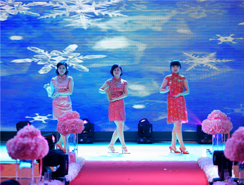 年会上,各部门、各分公司带来了异彩纷呈的节目,如:销售系统富区直销处的《彩云之南》、哈尔滨分公司的《如果幸福你就拍拍手》和太极表演《精忠报国》、大庆分公司的《歌舞串烧》都在服装、造型和表演上做了充分的准备。特别是齐齐哈尔分公司的原创节目《表演秀》,融合了公司的主要产品及产品介绍,别开生面,新颖别致。生产部门也精心的准备了许多精彩节目:酿酒车间化验室的《小苹果》、化验室的《bar bar bar》、包装车间的小合唱《步步高》和舞蹈《狐狸叫》、动力车间的《拉丁舞》、酿酒公司的脱口秀《征婚》和歌舞表演《光芒》等等,都受到的台下观众的好评。而引起全场轰动和经久不息的掌声的是公司领导们带来的精彩节目《有绅士陪伴的魅力女人时装秀》,领导们穿上鲜艳的礼服,在牧羊曲的伴奏下,优雅登场,或独行或相伴而行,在场下欢呼声中展示了自己的风采,让员工看到了领导们工作之外的一面,拉近了彼此的距离。年会上,还特别设计了神秘的献花环节,由生产系统员工献出了温暖贴心的玫瑰代表了对销售人员的支持和鼓励。