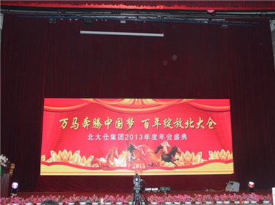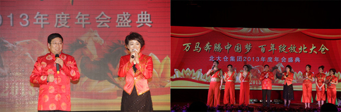 2014年3月8日,北大仓集团在嫩江宾馆隆重地举行了2013年度年会盛典。本次年会首次全部由公司内部员工组织完成,没有外请主持人和演员。年会在齐分公司火热的开场舞后,播放了2013年回顾短片,从各个角度回顾了2013年公司取得的成绩。隋熙凤总经理致以热情洋溢的开幕词。富区分公司的一曲《百年馨香北大仓》更是把晚会带入了正式的颁奖环节。从车间职工到管理中层各个岗位平时表现优异的个人和集体都受到了表彰。新晋升为副部长的几名年轻干部也登台进行了表态发言,还有一个神秘的环节给大家带来了感动和惊喜,公司生产部门向销售部门同事献上了红色的哈达,对他们一年的付出表示敬意。颁奖环节中间穿插了各部门精心准备的歌舞、小品等精彩节目,公司领导们的献唱及张总和刘总会计师合唱把现场气氛带到高潮,最后以全体领导全情投入、全新演绎的一曲歌伴舞《最美北大仓》落下了颁奖晚会的帷幕。晚宴晚会中,又演出了合唱、拉丁舞、轮滑、评书、歌舞等精彩节目。抽奖环节中不断有幸运的同事获得了奖品,作为抽奖嘉宾的隋总、张总、李总监和芦部长等领导又在大家的邀请下献上了清唱及舞蹈。现场还抽取了联通公司赠送的特别奖品,两部手机。由于现场气氛异常热烈,一等奖的大奖最后抽取了四轮才结束。欢乐的晚宴一直进行到了晚上十点。
