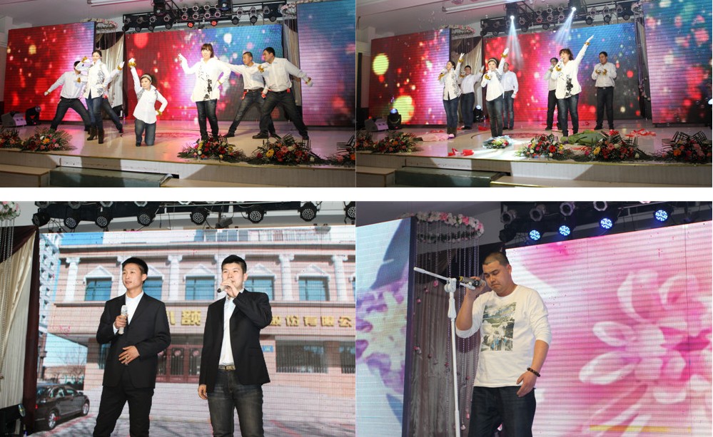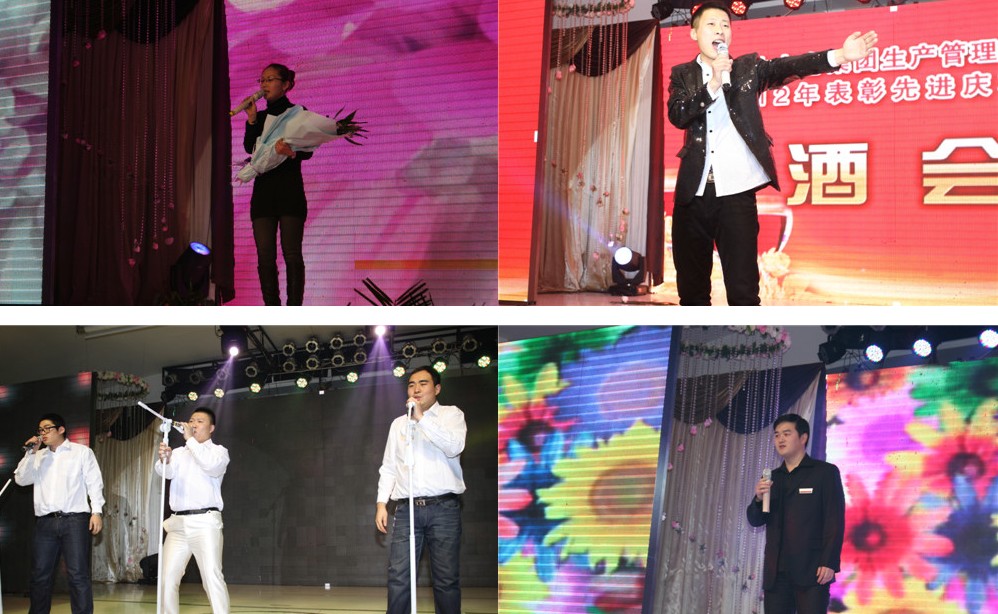 随着成品车间的一首小合唱《我相信》,大会进入了表彰先进的颁奖环节,首先上台受奖的是《最佳新人》和《工会积极分子》两个奖项的获得者。在富区的一首男生小合唱《我爱祖国的蓝天》之后颁发了《先进工作者》奖项,共有52人获此殊荣。在五轮的颁奖环节中穿插了幽默搞笑的《小人舞》为大家助兴。在审计部的一段相声《下象棋》之后,8位《劳动模范》的获得者上台领奖。随后集团公司副总经理刘建华为《技术创新奖》的获得者任维清同志颁奖并合影留念。之后市场部为大家带来了一段时而幽默时而深情的歌舞表演《怒放的生命》。集团公司财务总监刘秀杰、集团公司副总经理梁振为12位《中层干部劳动模范》颁发了奖品和证书,并合影留念。主持人邀请了全顺房地产公司董事长赵华为《中层干部劳动模范标兵》的3位获得者颁发了奖品和证书。最后,隋总亲自上台为《管理模范标兵》的3位获得者——高利军、齐鑫、李学武颁发了证书和奖品并合影留念。