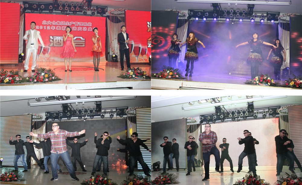晚宴环节,大家观看了大金山为晚会带来的《现代舞》《二人转》等节目,由动力和成品车间带来的舞蹈《high歌》更加精彩,而真正将晚宴现场气氛引入高潮的是酿酒车间为大家表演的舞蹈《江南style》。随后又有多人为大家带来了合唱和独唱。中间穿插的抽奖环节更加激动人心,袖珍部优、红蓝专供、军威、国粮12年、神九纪念酒、53°原浆酒每一次抽奖都牵动着大家的心,最后,富区酿酒公司的两位同事,非常幸运的收获了53°原浆酒。最后,公司领导集体谢幕,晚会圆满成功。